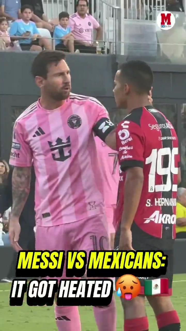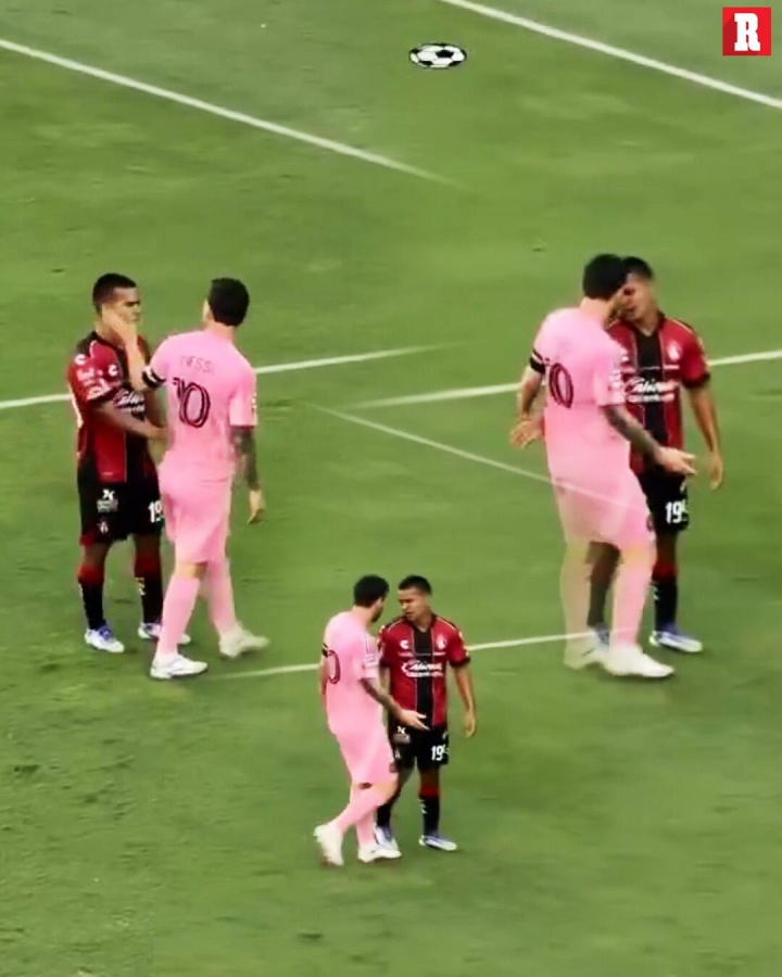 上半场比赛中,梅西被阿特拉斯球员埃尔南德斯犯规,随后与他发生历害,碰了下对方球员脖子和脸。