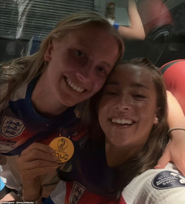 玛雅-勒蒂西埃稍后上传了球队大巴上与贝弗-琼斯自大奖牌的自拍。