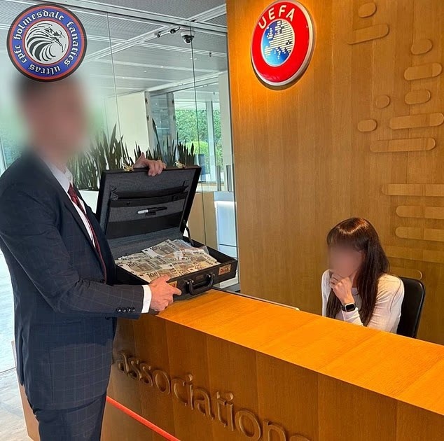 在裁决公布前,水晶宫球迷不竭发声抗议。最新步履中,古道球迷组织“霍姆斯代尔狂热派”成员携装满假钞的行李箱,来到欧足联豪华的湖畔总部。这场步履艺术旨在调侃他们合计欧足联更受财富启动而非公说念,随行李箱附有致欧足联主席切费林的信件,条目取销决定。
