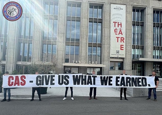 随后球迷转战洛桑体育仲裁法庭总部,高举横幅指控体育高层说念德停业,条目法庭退回他们应得的权力。该球迷组织在推特上发文称:“咱们向欧足联主席迎面递交条目取销不公裁决的信件,并标识性呈递代表其失误价值不雅的假钞行李箱。咱们领导体育仲裁法庭该裁决必须被推翻,抗议将不竭至正义得到伸张。”