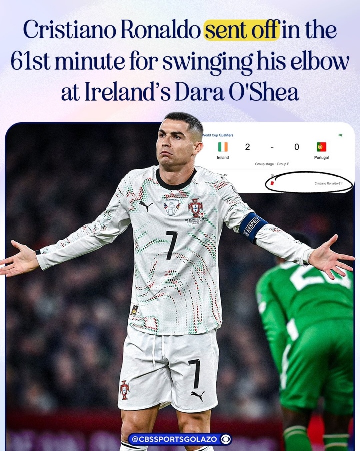 C罗因暴力算作被VAR审查后罚下,他将错过葡萄牙在2026宇宙杯的首场比赛。