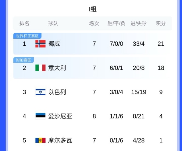 I组的方位通俗明了,挪威和意大利王人细目了干预小组前二。除非意大利以9球及以上上风打败挪威,不然挪威就将得回小组第一纵贯宇宙杯。挪威上一次参加宇宙杯还要追忆到1998年,其时哈兰德还没出身。