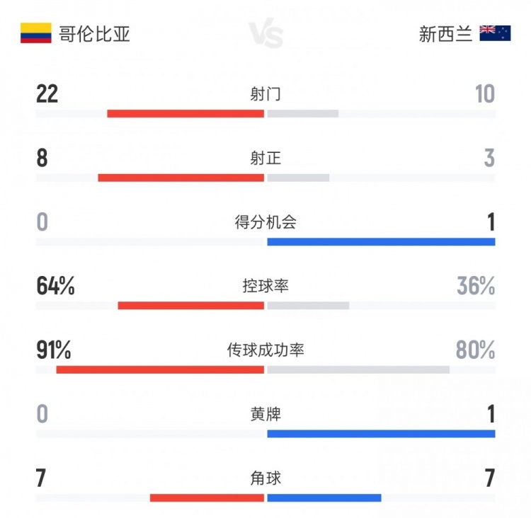 此役上半场第3分钟古斯塔沃·普埃塔破门,为哥伦比亚先拔头筹,下半场第80分钟本杰明·奥尔德扳平比分,第88分钟约翰·巴兰塔攻入绝杀进球,哥伦比亚2-1慑服新西兰。
