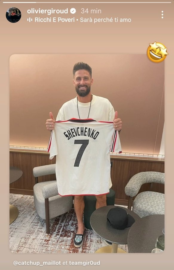齐曾为米兰遵守!吉鲁更新支吾媒体,晒出舍甫琴科的7号米兰球衣