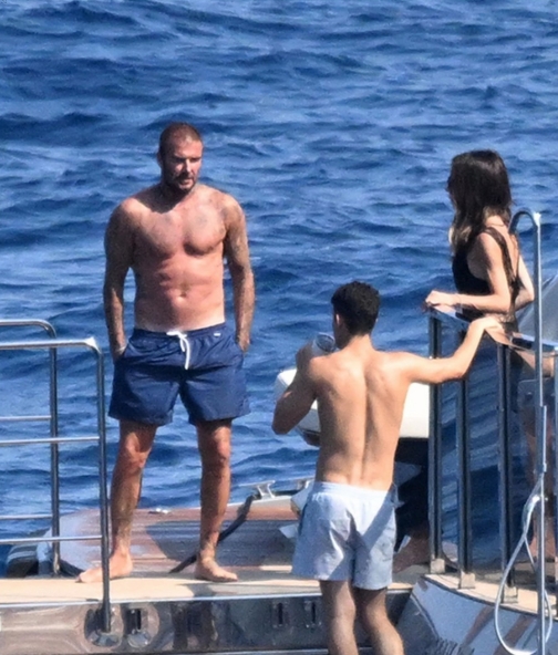 邮报暗示,他们一家东谈主在一艘价值1600万镑的豪华游艇上。小贝赤裸着上身一稔短裤,维多利亚一稔一套连衣裙。其中媒体还拍到了贝克汉姆与维多利亚亲密互动,贝克汉姆的手放到了维多利亚臀部。