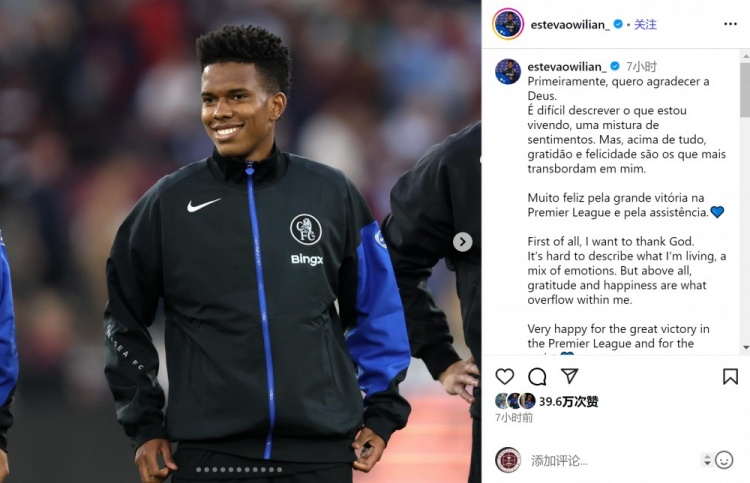 埃斯特旺此役为切尔西首发出战,送出助攻,并当选本场比赛最好球员。赛后他在酬酢媒体上写说念:“当先,我思感谢天主。 很难形色我当今的感受,各式心境交汇在一齐。但最要害的是,我内心充满了感德和风光。
