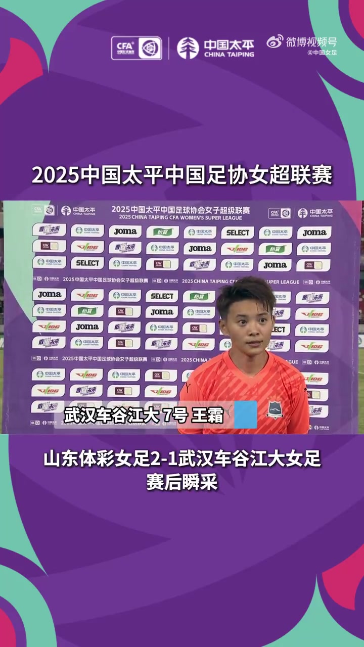 山东体彩女足2-1武汉车谷江大女足 王霜赛后收受采访