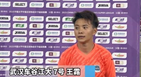 山东体彩女足25号李英华和武汉车谷江大7号王霜收受了采访。