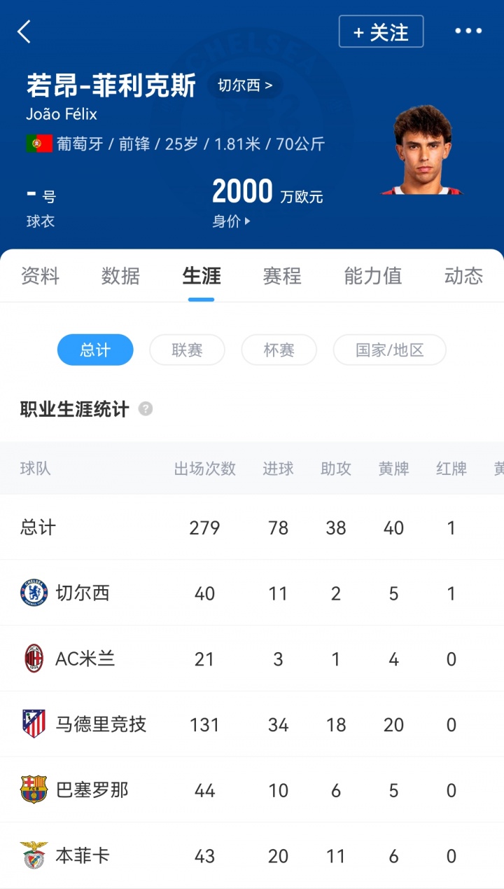据此前报说念,菲利克斯将以3000万欧元固定+2000万欧元浮动的转会费加盟利雅得得胜,切尔西但愿收回在球员身上的投资。现在菲利克斯德回身价为2000万欧元,这位葡萄牙畴昔金童现年25岁。
