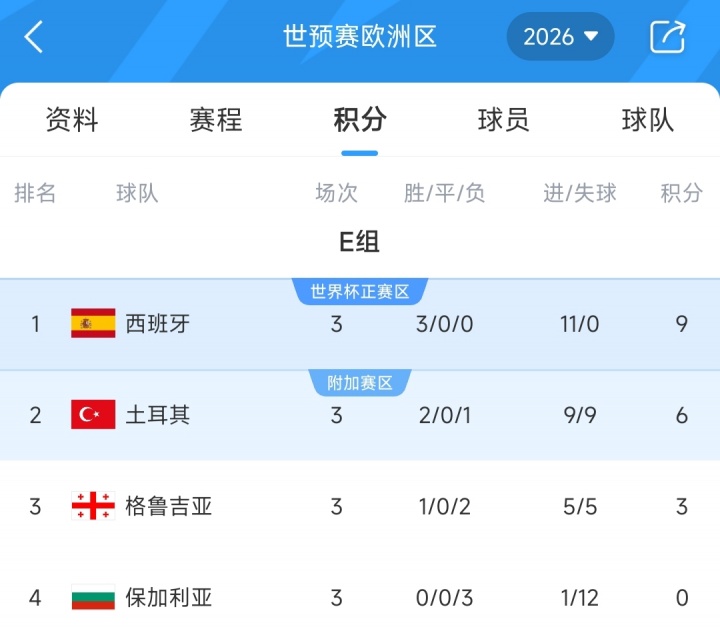 辞世初赛欧洲区E组积分榜上,土耳其2胜1负积6分排行小组第2,过期榜首西班牙3分;由于11个净胜球的雄壮差距,即使土耳其在与西班牙的径直对话中收效,也很难小组头名纵贯寰宇杯,争夺附加赛经验对土耳其来说是更有可能的聘任。