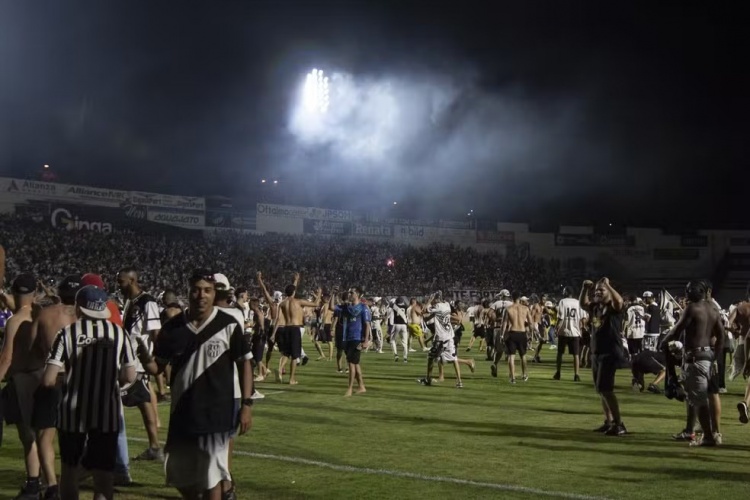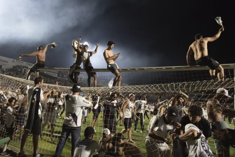 凭证官方安排,本应由巴西足协主席萨米尔-夏德在球场上径直向冠部队伍颁发奖杯和奖牌。但是,比赛罢休哨声刚一响起,球迷便簇拥而入,导致搭建受奖台变得不成行。朝上14000名庞特普雷塔球迷到场不雅赛,在比赛临了几分钟一些场外的不雅众也设法插足了球场内。尽管现场播送系统束缚命令球迷不要插足场地,但多数东谈主群已经冲入场内拥抱球员和技艺团队成员。