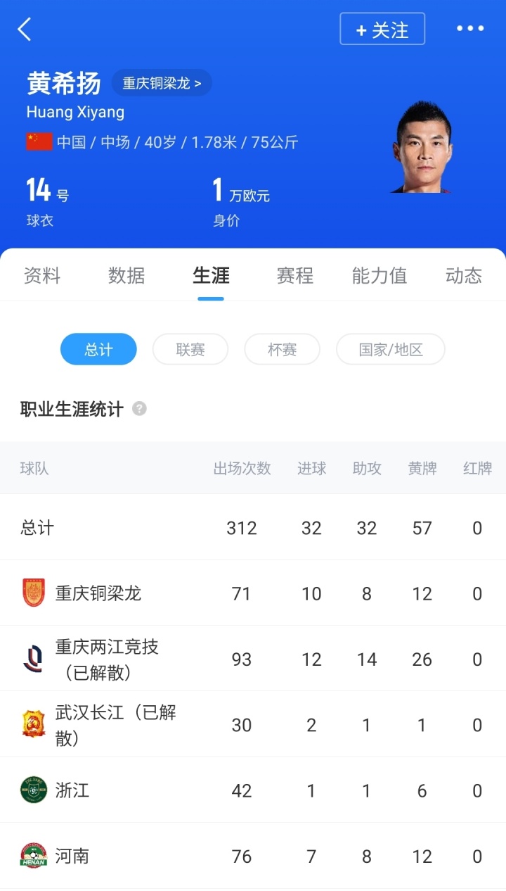 黄希扬糊口出谈即是在重庆力帆,2020赛季回到重庆两江竞技遵循2个赛季后球队罢手运营,2022年黄希扬加盟重庆铜梁龙遵循于今。