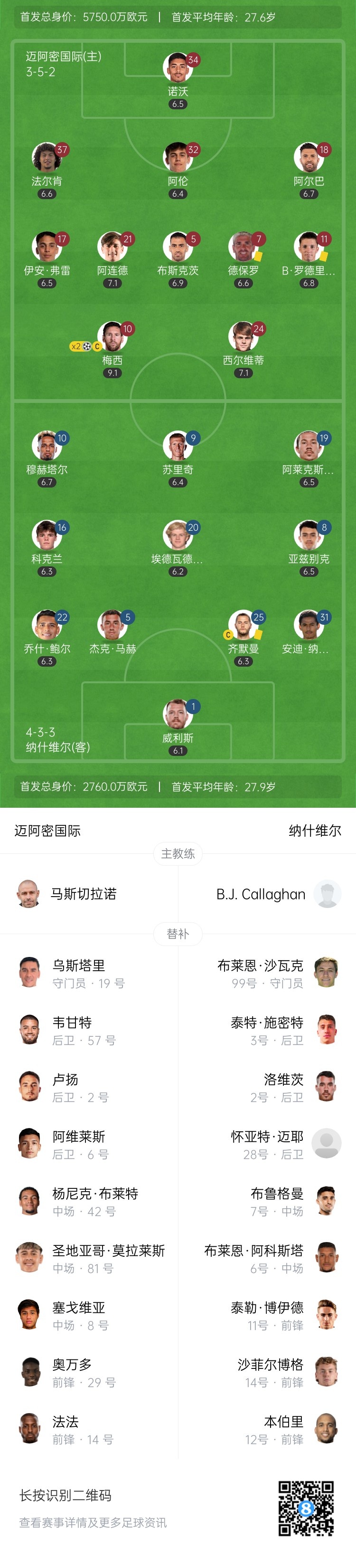 第38分钟,迈阿密海外右路传中,后点阿尔巴凌空抽射,皮球被挡了出来↓