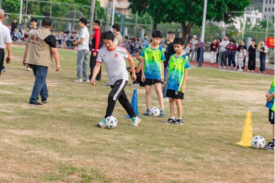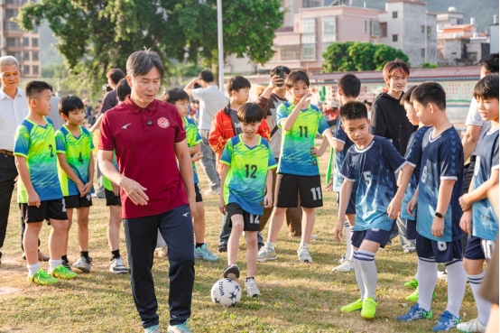场面的中间摆放着锥桶,彭家昆玉俩被孩子们围成一个圈,众人都津津隽永地看着这两位昔日广州足球的城市强人耐性肠锻练和示范每一个足球基本动作。尽管鹏岭小学是培植部门认证的足球特点校,但孩子们的足球基础仍然很薄弱,即等于一些原来很简便的动作,照旧有不少孩子难以按条目顺利完成。面临这样的情况,彭家昆玉显著早有想想准备,他们把动作拆分得更细,锻练也新活泼,常常触发孩子们的爆笑和掌声。