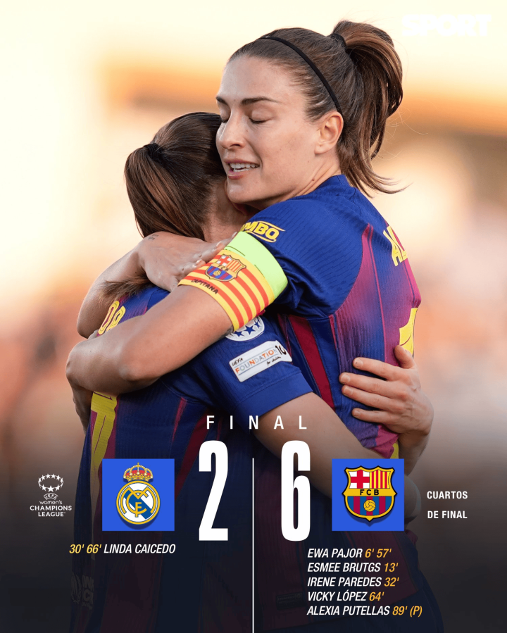 女足欧冠1/4总决赛 首局 皇马2-6巴萨, 巴萨五人分别得分