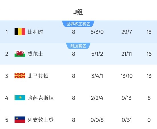 本组头名为积18分的比利时,欧洲红魔将纵贯寰球杯。