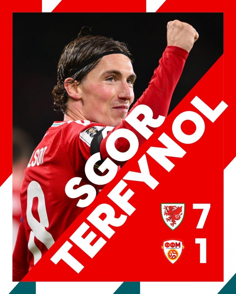 最终,威尔士7-1北马其顿,得胜在积分上反超敌手,积16分位列小组第二,将竖立附加赛。