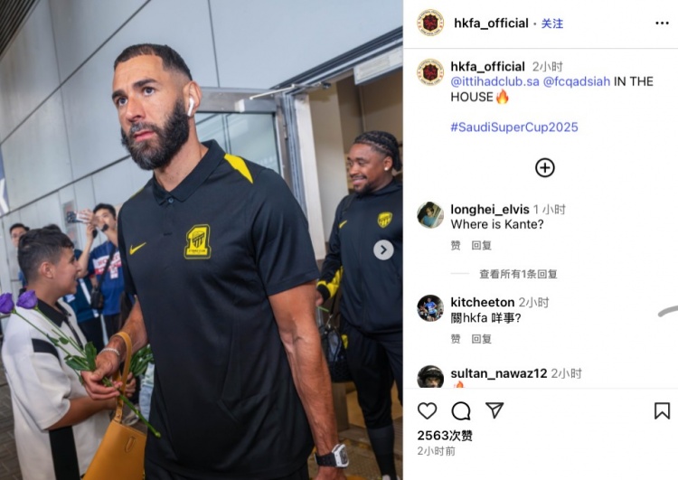 中国香港足协ins为像片配文写谈:“吉达集会和库迪西亚已就位!#沙特超等杯2025”