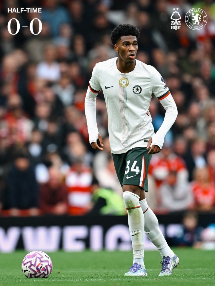10月18日讯 英超第8轮,切尔西半场暂时与诺丁汉丛林0-0战平。