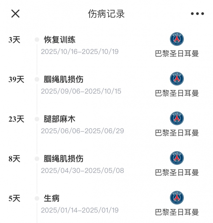 登贝莱本年夺得金球奖,而本赛季他的每每受伤不由得让东说念主思起客岁的金球先生罗德里,罗德里在重伤事后伤病束缚,本赛季仅为曼城出战6场比赛。