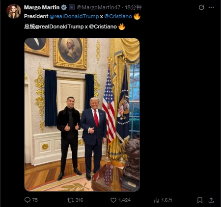 此外白宫官网还发布了C罗携王老五骗子妻乔治娜造访特朗普办公室,与特朗普交道、合影的组图。
