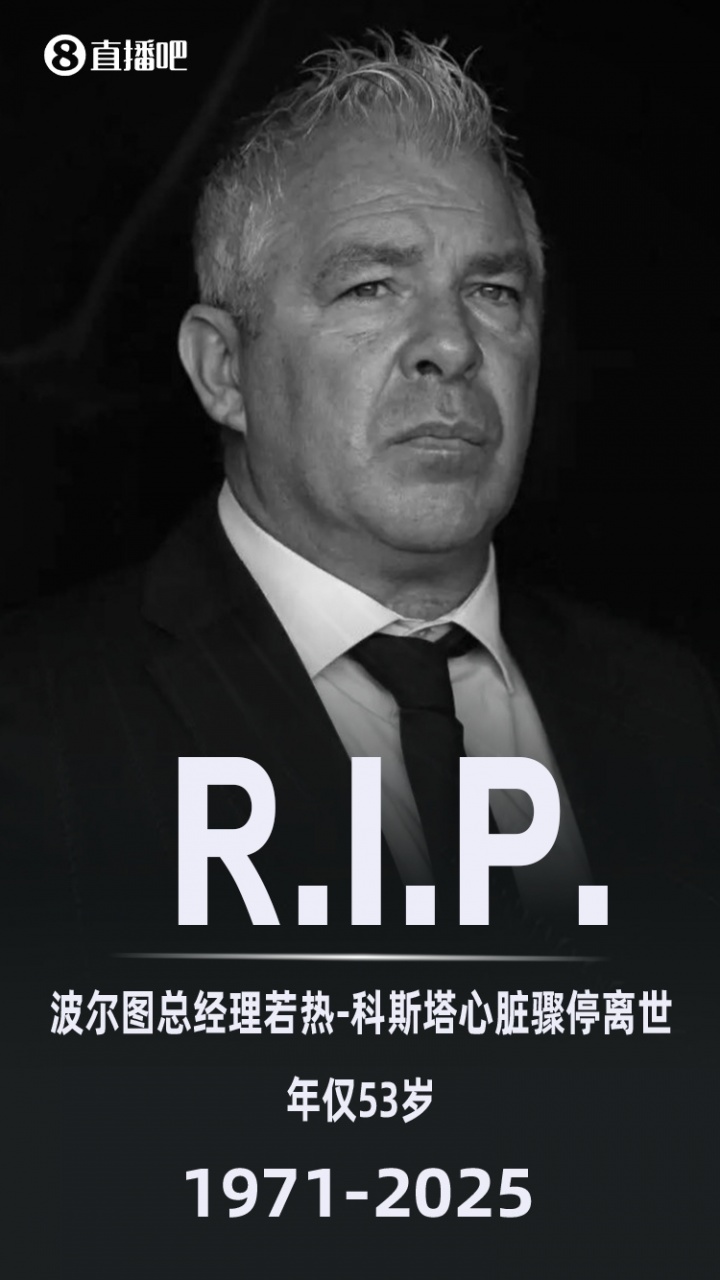 葡萄牙足坛名宿、波尔图总司理若热-科斯塔腹黑骤停物化,年仅53岁,葡萄牙足协说明,8月8日到8月11日历间葡萄牙足协组织的通盘比赛齐将致哀一分钟,以吊问若热-科斯塔。