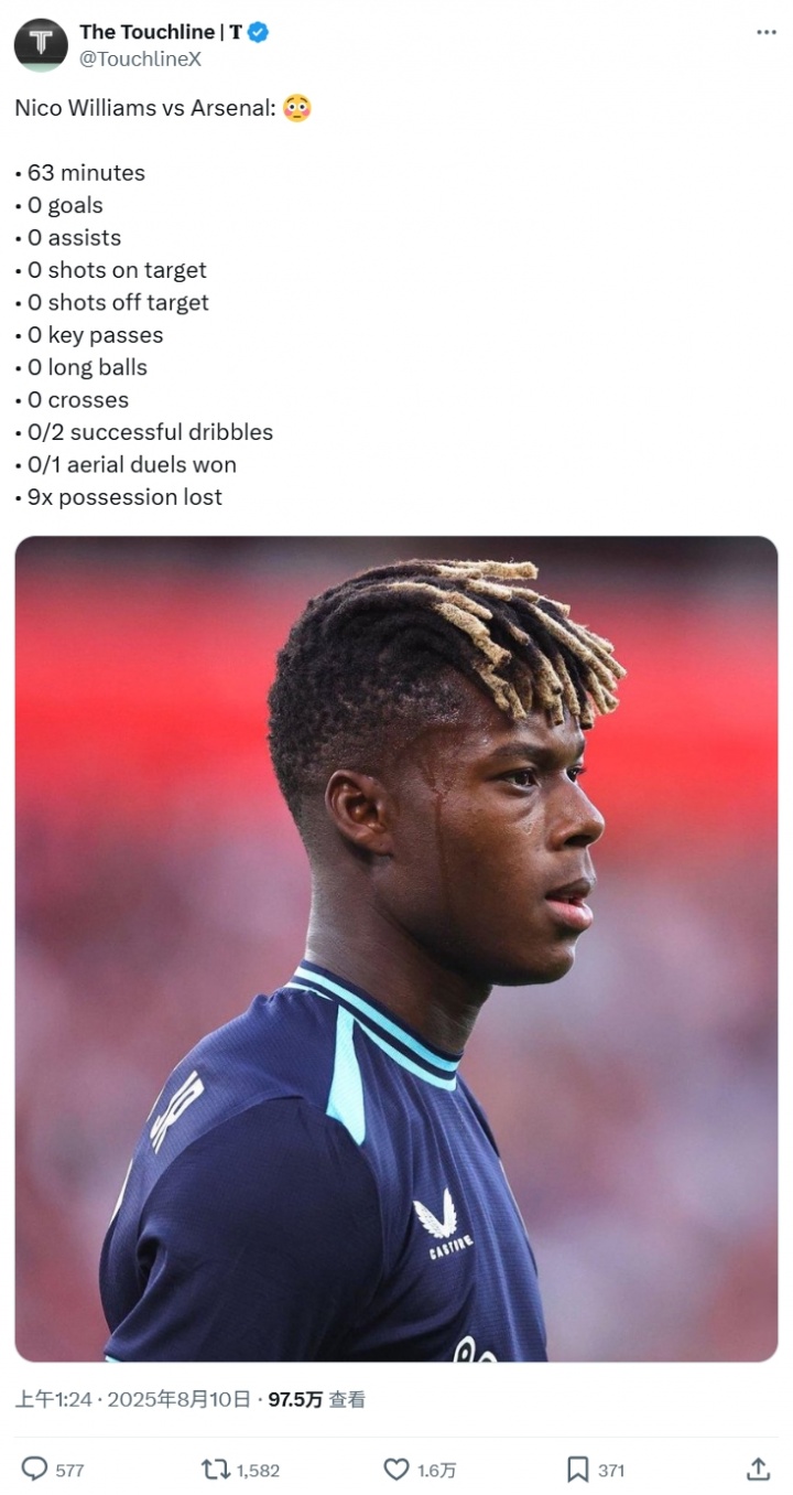 08月10日讯 毕尔巴鄂竞技在酋长杯中0-3负于阿森纳,身价7000万欧的尼科-威廉姆斯发扬平方,再度激发球迷热议。
