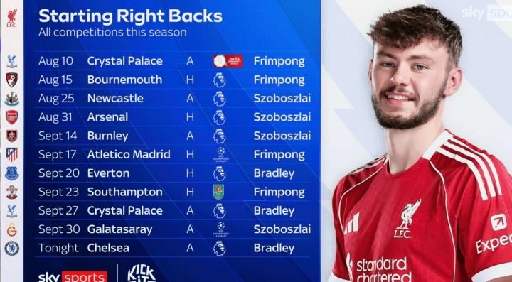 此役布拉德利担任利物浦首发右后卫,据太空体育统计,本赛季利物浦莫得任何右后卫承接4场首发。
