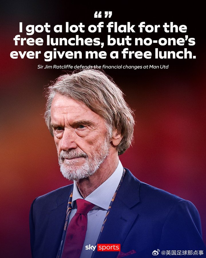 【没东说念主请我吃过免费午餐】拉特克利夫爵士谈到除去450个岗亭和取消职工福利时示意: