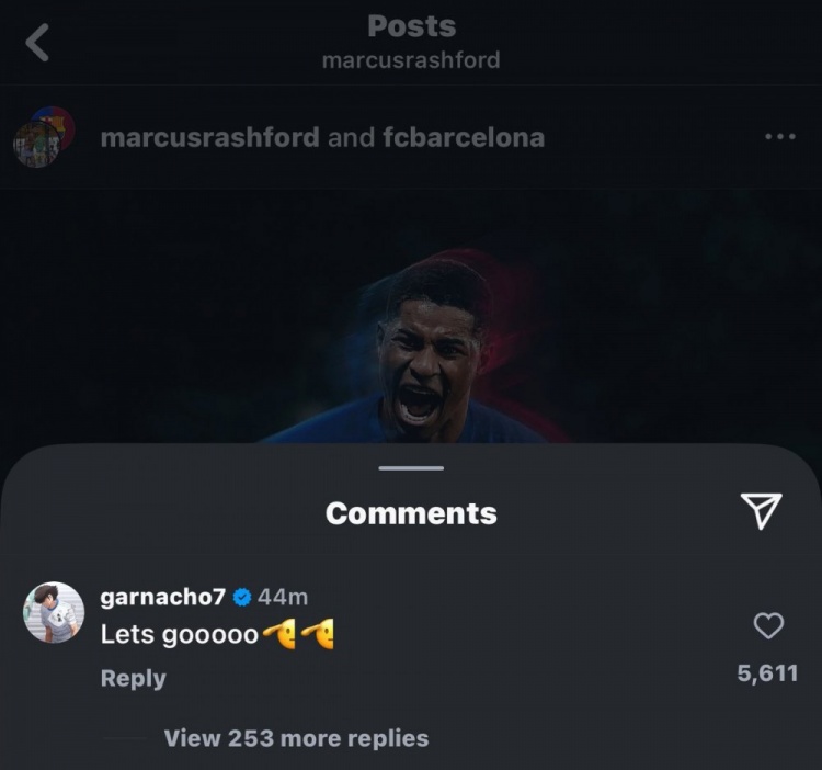 加纳乔在拉什福德官宣社媒下留言说念:“Let’s go!(直译为“让咱们开赴”,也可判辨为“冲啊!加油!”)🫡🫡”并配上了“敬礼”神采。