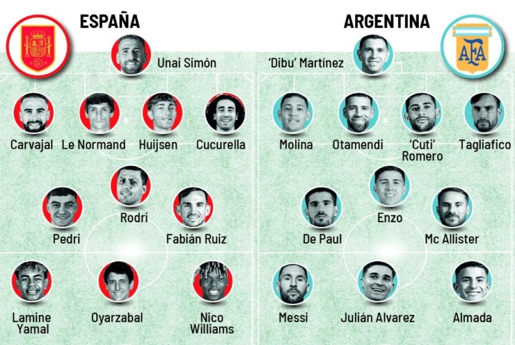 10月13日讯 凭证《马卡报》报说念,西班牙队vs阿根廷队的西洋杯可能来岁3月在多哈进行,《马卡报》随后撰文对比了两队首发情况。