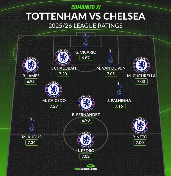 11月1日讯 本轮英超切尔西将对阵热刺。数据网站Whoscored也清点了两队球员本赛季英超评分最高威望,具体如下:
