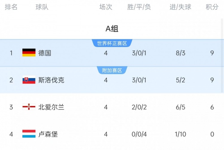 德国3胜1负积9分,在欧洲世初赛A组中名次首位,而斯洛伐克同积9分排在第二位,关于德国队的出线地点,克罗斯抱乐不雅派头。