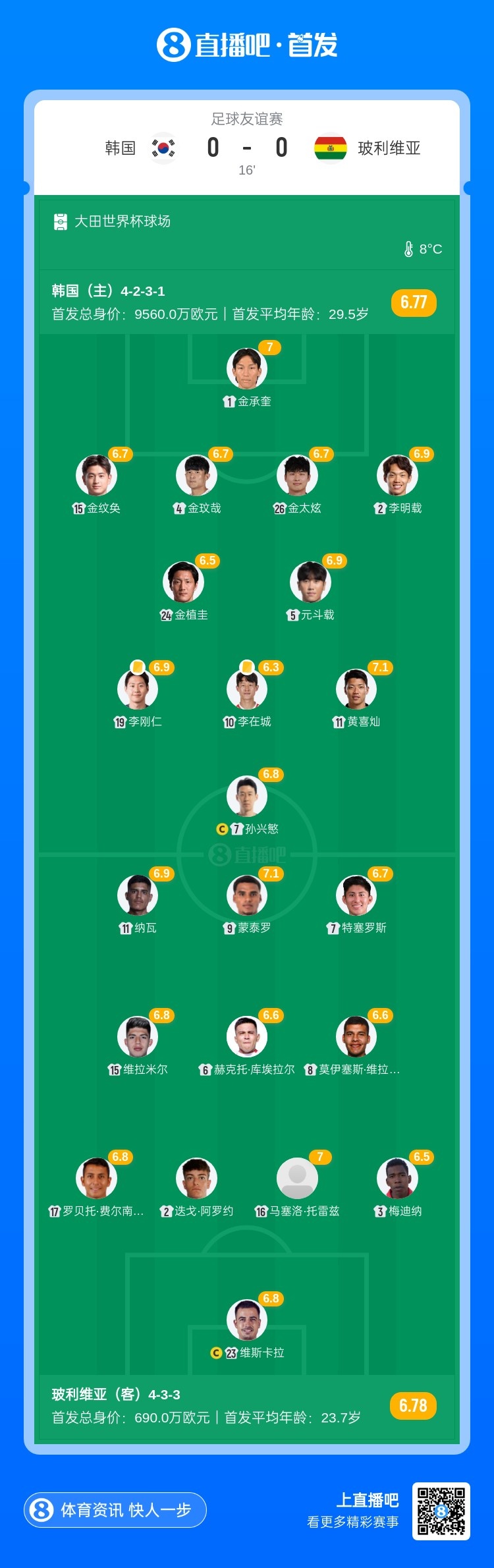 11月14日讯 北京时分19:00,国外足球友谊赛韩国vs玻利维亚,本场比赛由马宁吹罚!上半场,金太炫站立,蒙泰罗失良机;李在城、李刚仁染黄。半场规模,韩国暂时0-0玻利维亚。