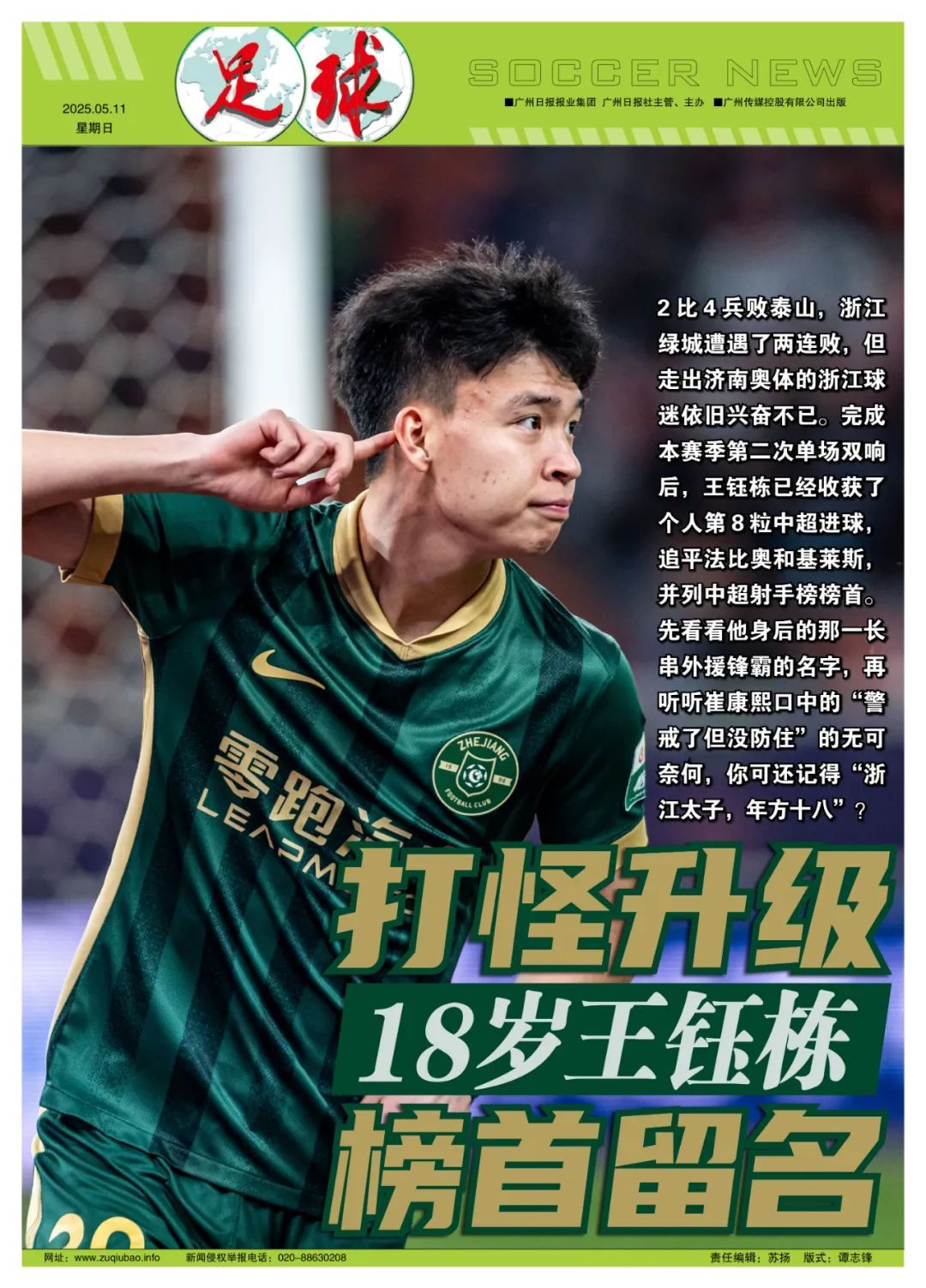 记者左瑞报说念 中超第12轮客场2比4输给山东泰山的比赛中,18岁的王钰栋包办了浙江绿城的两个球,本赛季个东说念主总进球达到8个,与天津津门虎的基莱斯、北京国安的法比奥两名外助先锋比肩中超弓手榜第一位。印象中,这是本世纪以来中国顶级联赛初次见证如斯芳华遗迹。